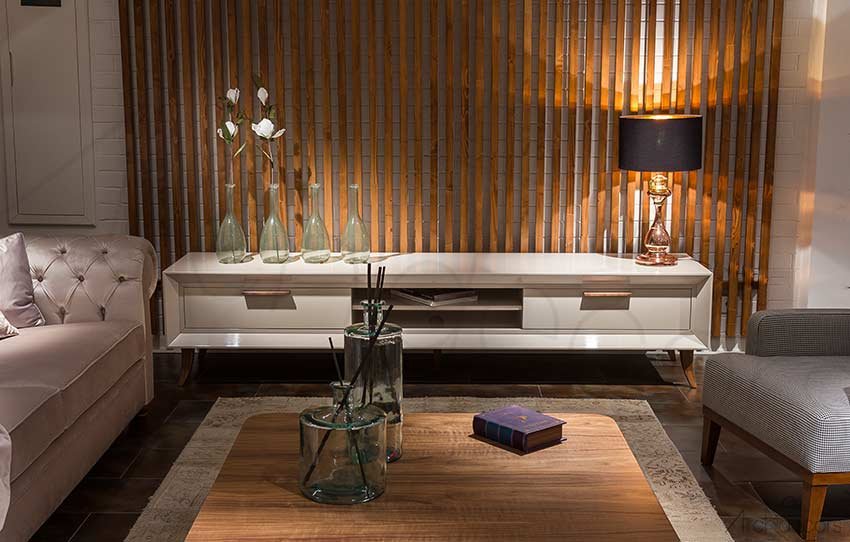 Cam: Cam TV üniteleri oturma odanızda şık ve çağdaş bir görünüm yaratabilir. Ayrıca daha küçük bir alanın daha büyük görünmesini sağlayabilirler.